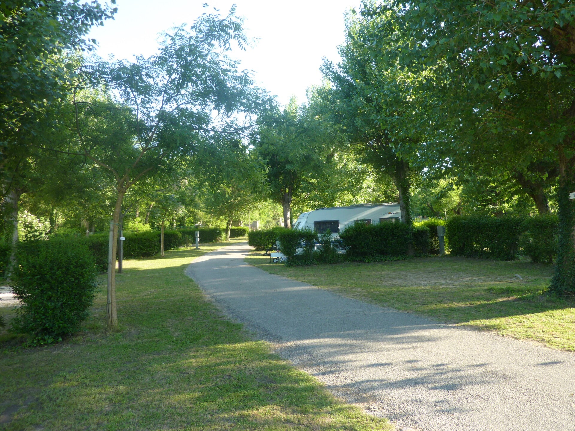 De Camping-car park ligt aan de voet van de heuvel langs een weg met wat verkeer dat later op de dag verminderd.
